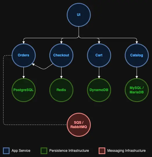 上記の出力からわかるように、「ui」コンポーネントだけが「catalog」サービスコンポーネントと通信でき、「orders」サービスコンポーネントはできません。